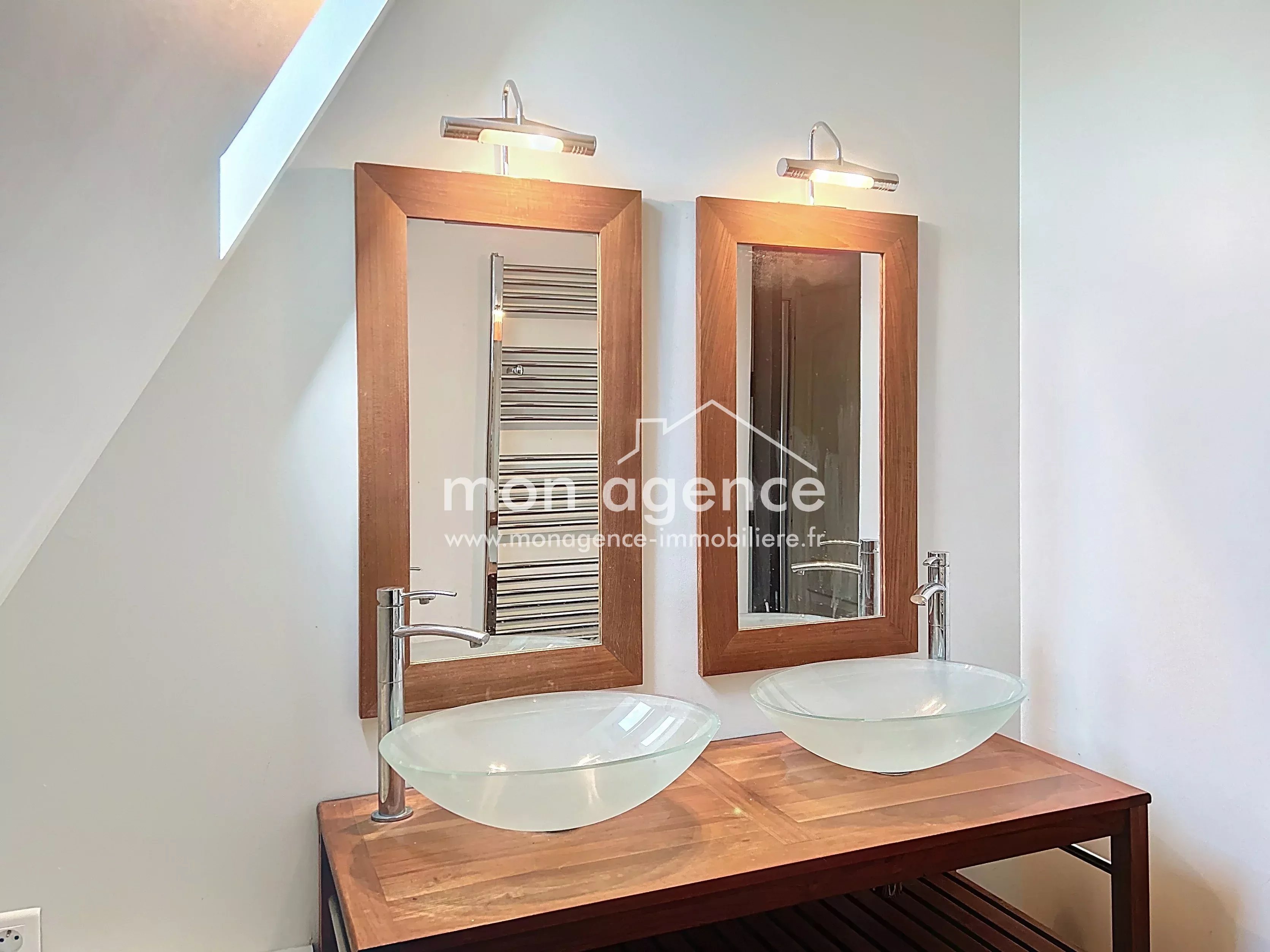 Sous-sol complet : garage (recharge voiture électrique), chambre d’amis, buanderie et salle de sport